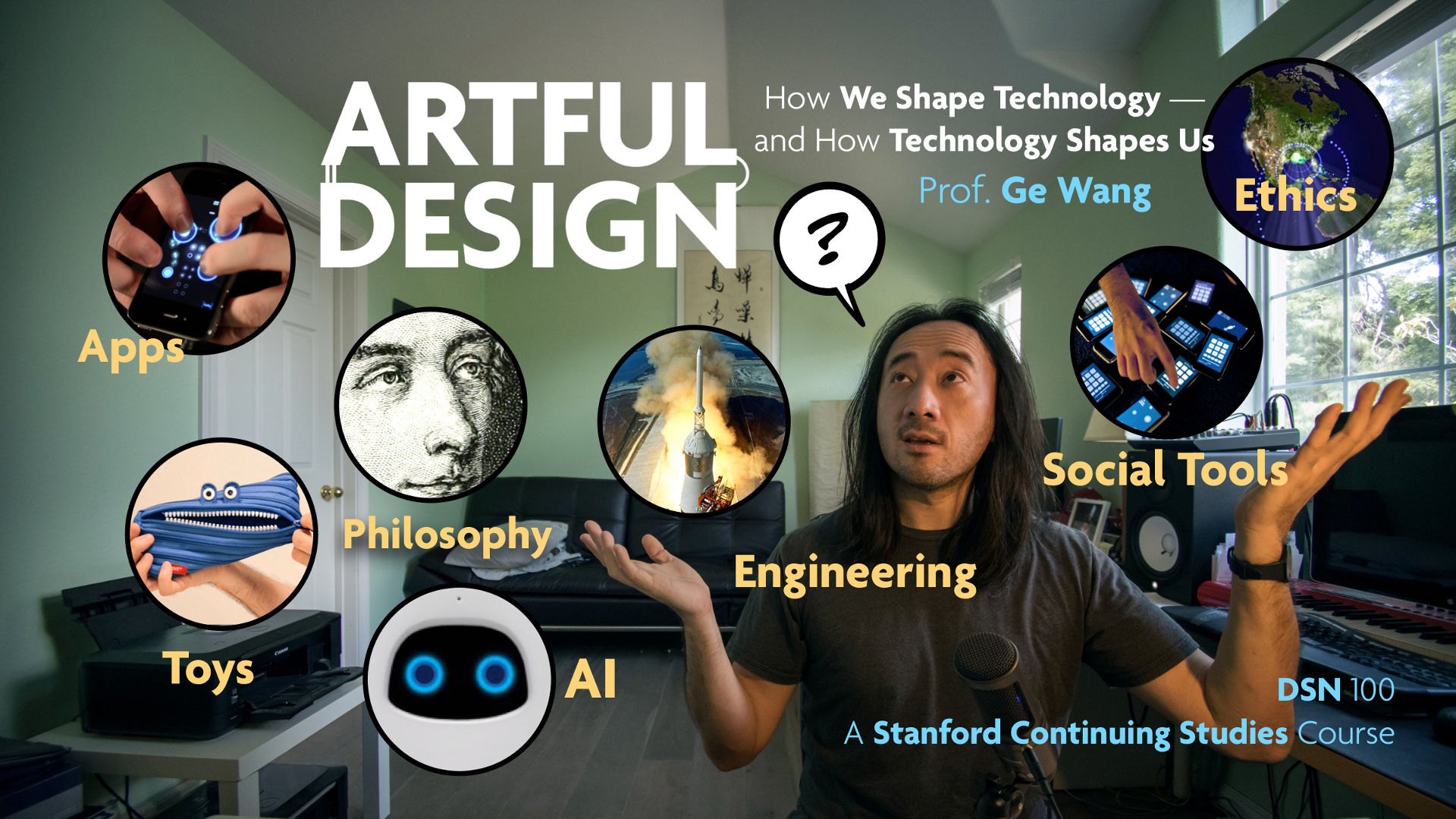 Ge Wang is an Associate Professor of Music and, by Courtesy, of Computer Science, Stanford University. Ge researches artful design of tools, toys, games, instruments, social virtual reality experiences. He is the architect of the ChucK music programming language and the director of the Stanford Laptop Orchestra. He is the co-founder of Smule and the designer of the Ocarina and Magic Piano apps for mobile phones. A 2016 Guggenheim Fellow, Wang is the author of the textbook in this course Artful Design: Technology in Search of the Sublime, a photo comic book about how we shape technology—and how technology shapes us; he has taught courses on design, software, ethics, computer music, artful design, technology and society at Stanford since 2007.